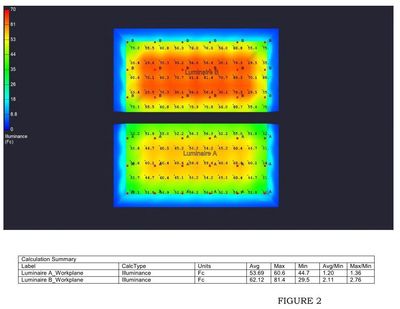 In summary, both fixtures meet the design criteria of 50 footcandles maintained on the work plane. However, horizontal footcandle levels should never be the only measure of performance. Uniformity should always be included in the performance specification and photometric data should be closely examined. The Zonal Lumen Summary gave clues that further comparison was needed but the Calculation Summary and Pseudo Color Rendering revealed the facts.